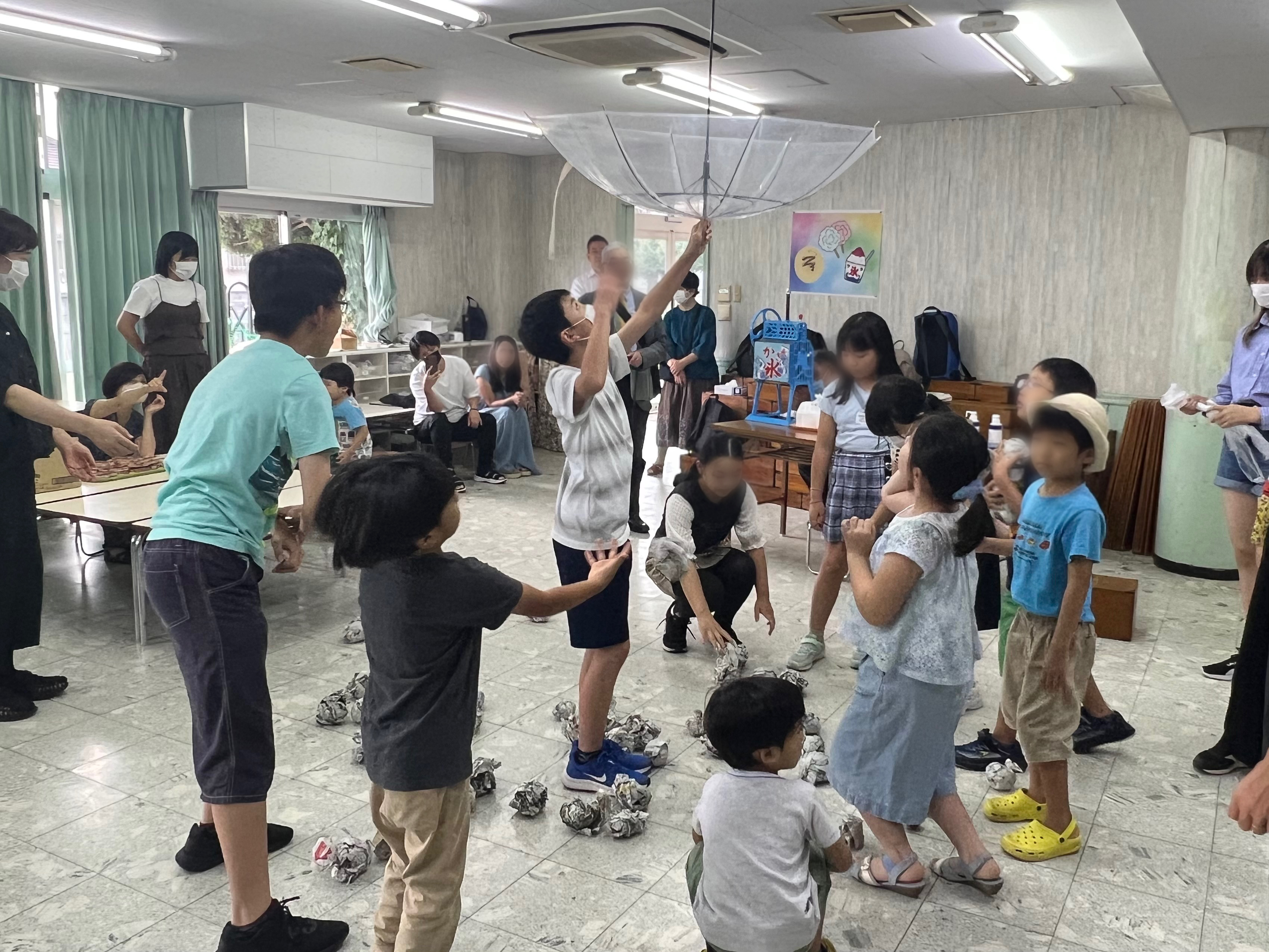 聖書のお話を聞いた後に、ビニール傘玉入れやスーパーボールすくいなどのゲームを中高生がリードして、楽しい時間を持ちました。