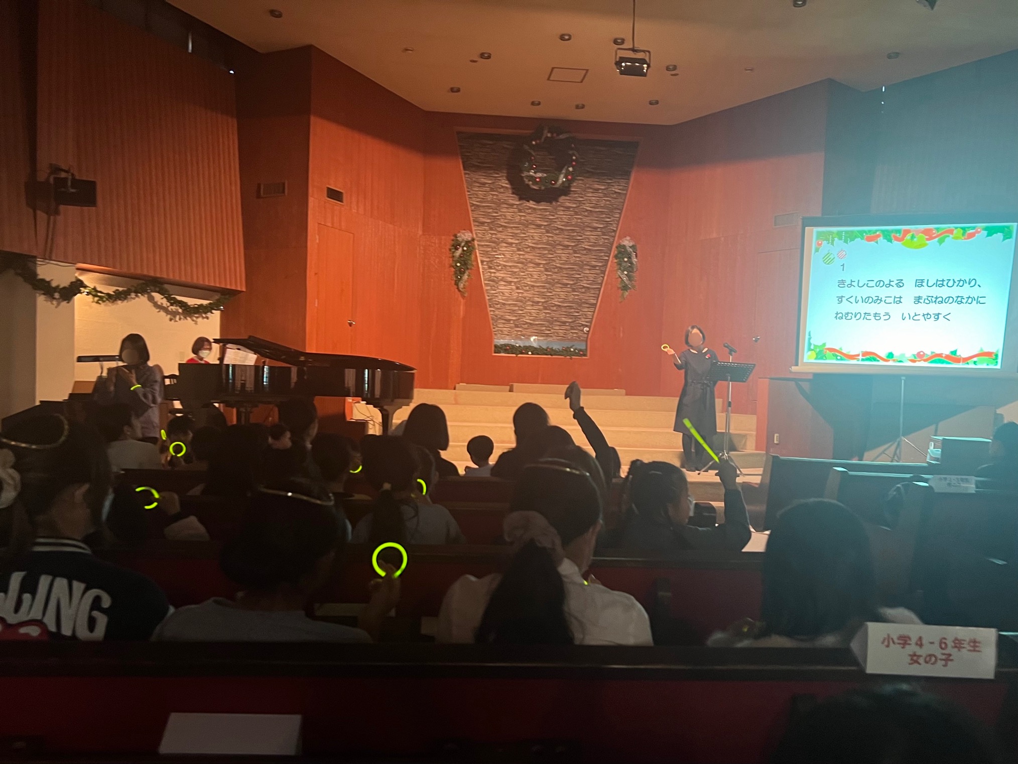 クリスマスの賛美を歌い、イエス様のお誕生に