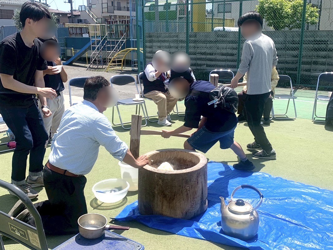 壮年や青年が順番に杵をふるい、つきたての餅を味わいました。