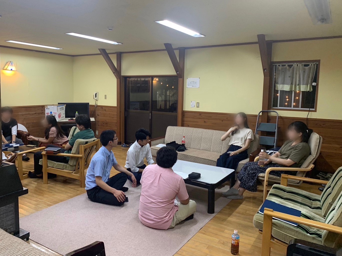キャンプを行い、2回にわたって聖書の話を聞きました。